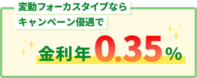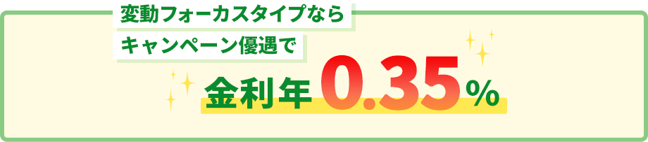 変動金利(半年型)タイプ<変動フォーカス>を選択された場合:当初借入金利から年0.1%引下げます。