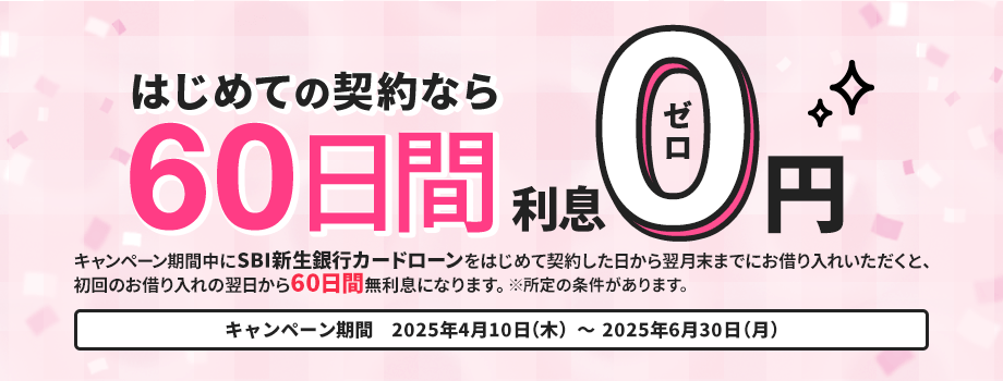 2025年6月にご契約されたお客さまは、翌月末(2025年7月末)までにお借り入れいただくと、初回のお借り入れの翌日から60日間無利息になります。※所定の条件があります。