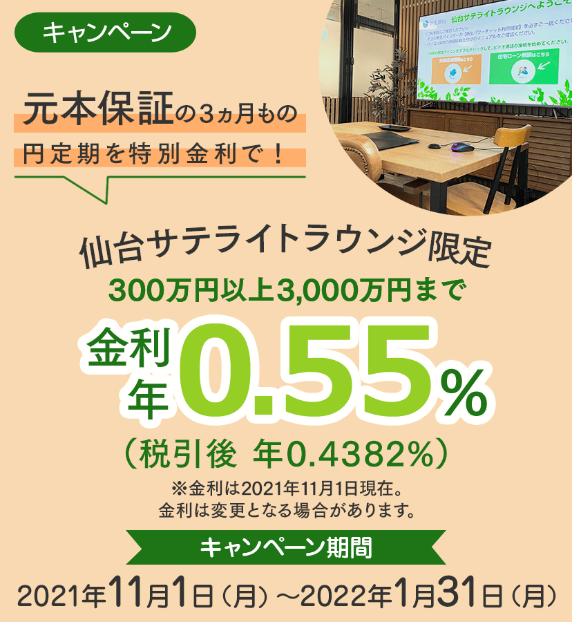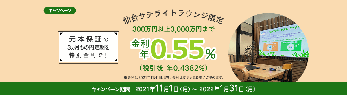 仙台サテライトラウンジへご来店いただき、円定期をご設定