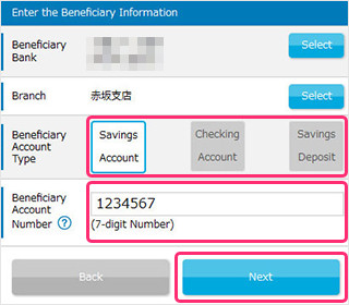 Select the"Beneficiary Account Type"from the following, Savings account (Futsu Yokin),