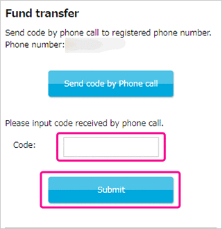 Enter the verification code sent by automated voice to your telephone registered with us and tap 'Submit'.