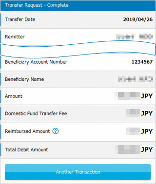 - When you enter the account number, the beneficiary name will be automatically shown (Name-back function). Please confirm if the beneficiary name is correct.