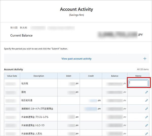 Click the pencil icon in the “Memo” field, enter your note, and press Enter or click outside the input area to save it.