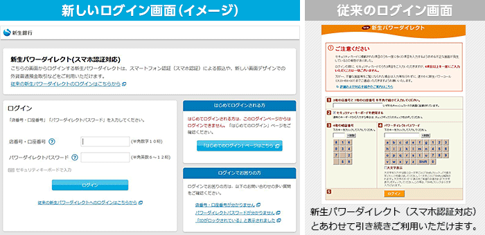 従来の新生パワーダイレクトも、引き続きご利用いただけます。