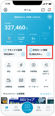 ▼現在ご契約いただいている住宅ローンの残高がアプリ上で表示されるようになりました。
