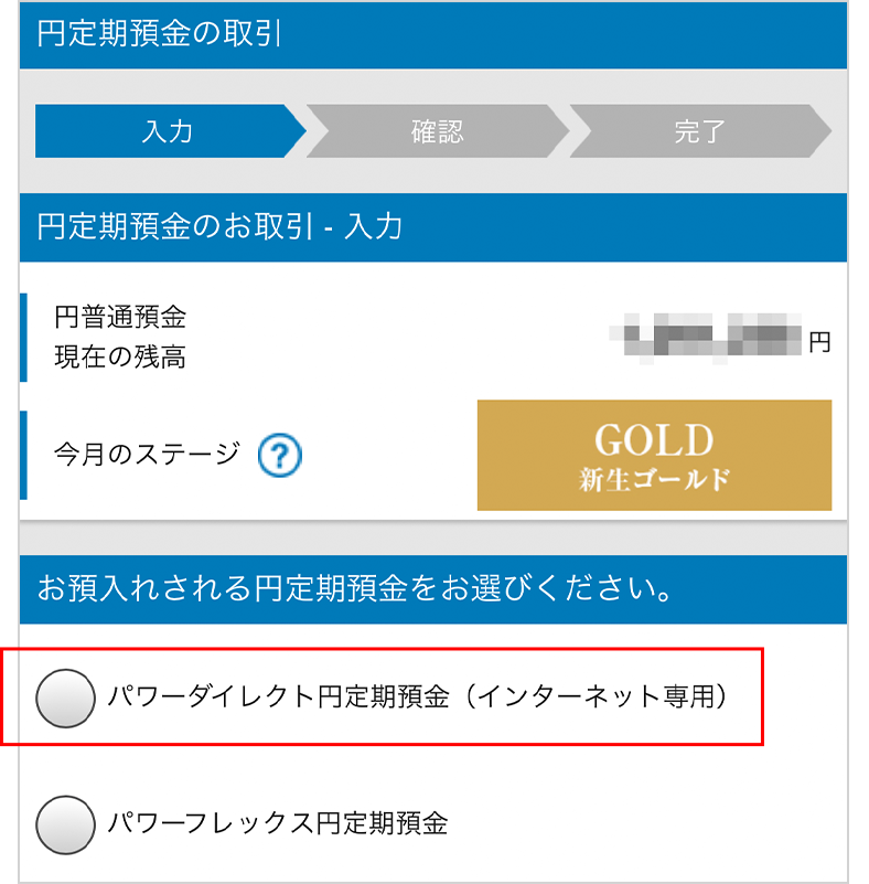 「パワーダイレクト円定期預金(インターネット専用)」を選択