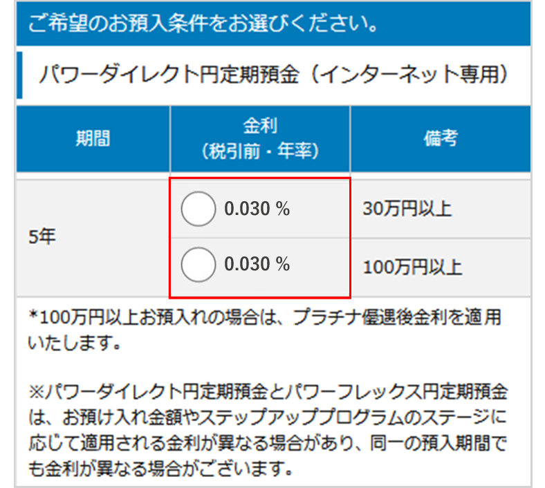 パワーダイレクト円定期預金100:1口100万円以上、1円単位