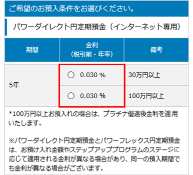 商品内容(パワーダイレクト円定期預金30、パワーダイレクト円定期預金100)