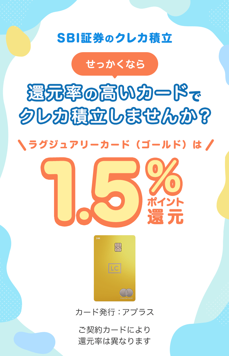 ラグジュアリーカード(ゴールド)ならクレカ積立額の1.5%のポイント還元率となっております。