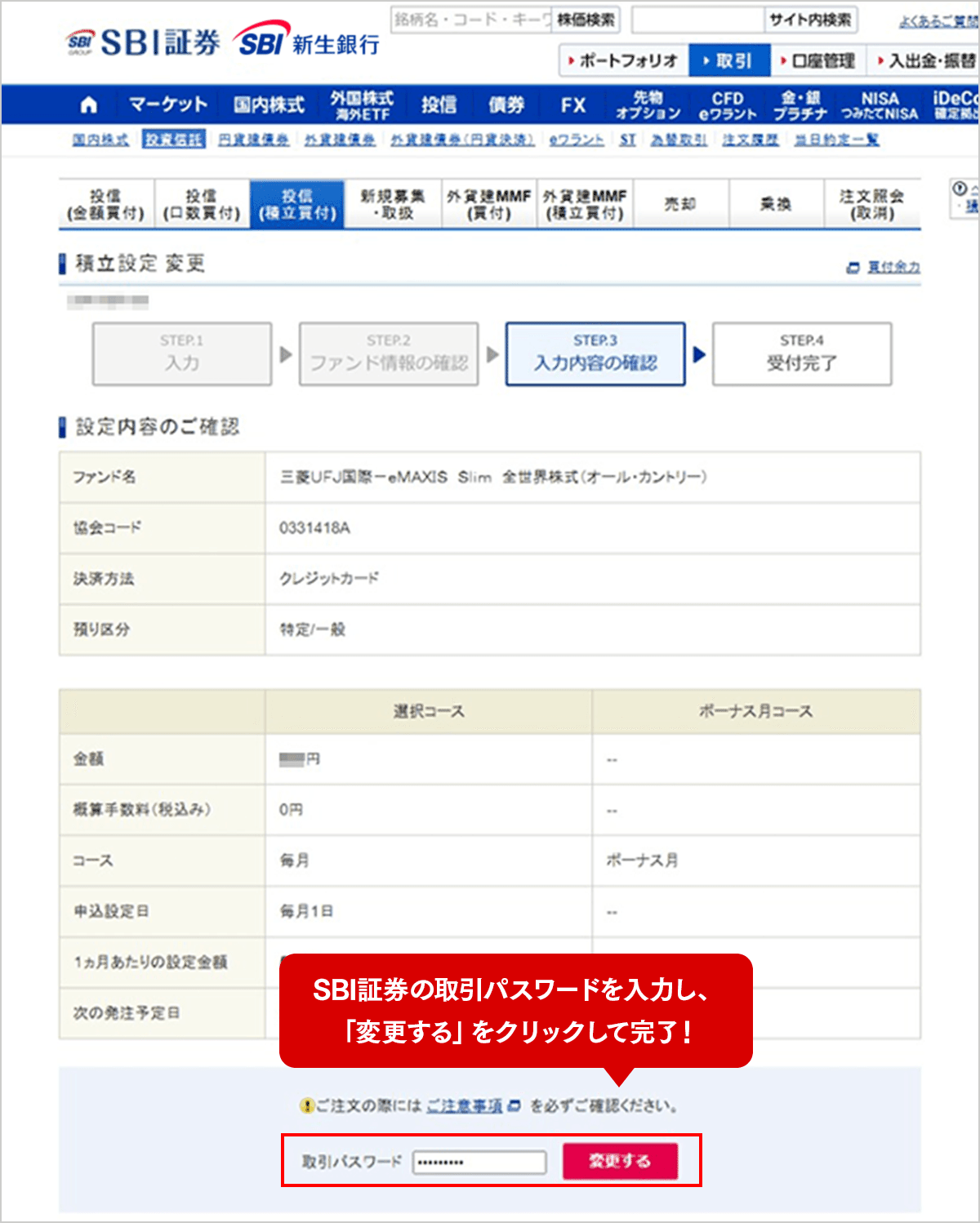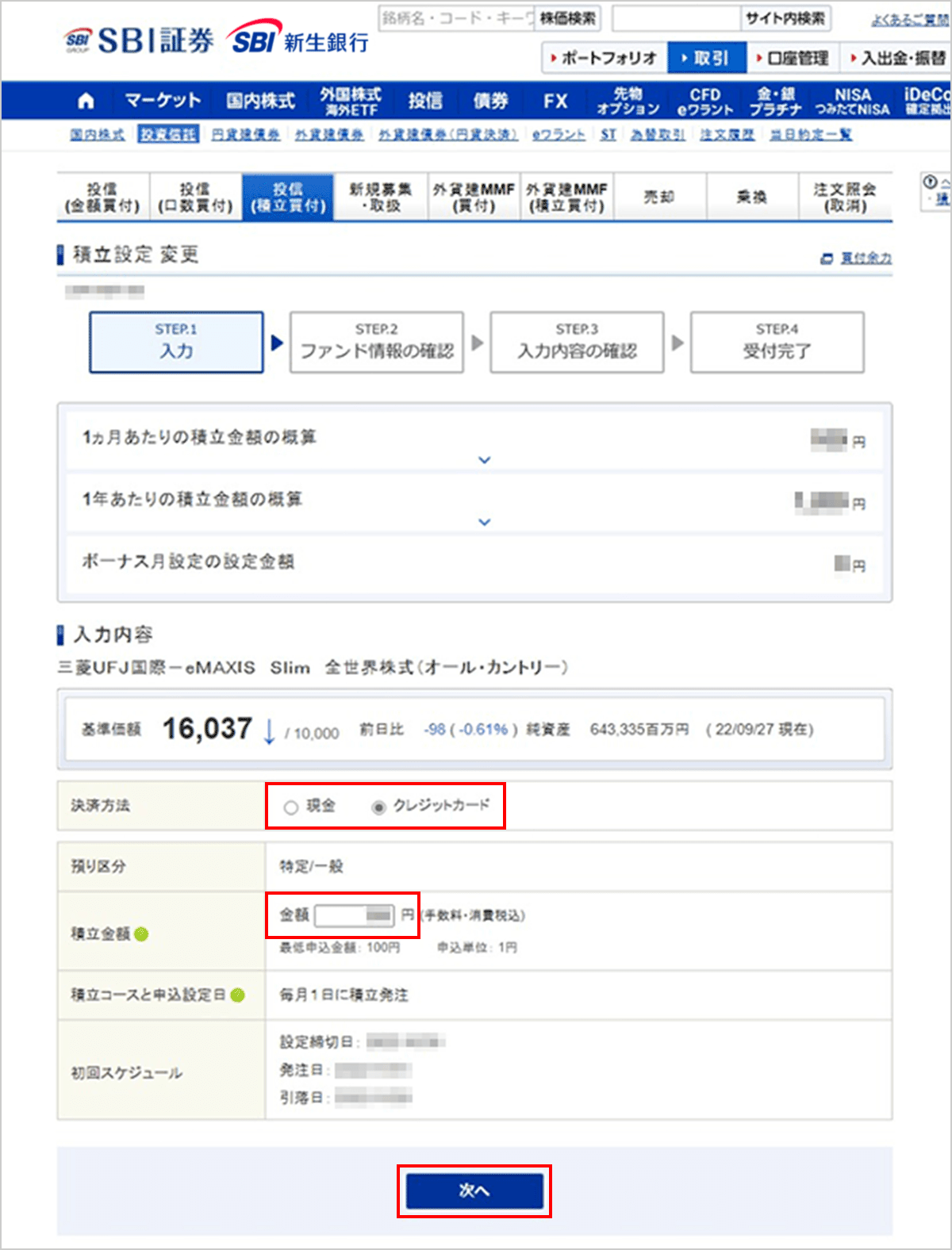SBI新生銀行の金融商品仲介(SBI証券)口座でのクレカ積立に関する手続き方法のご案内。