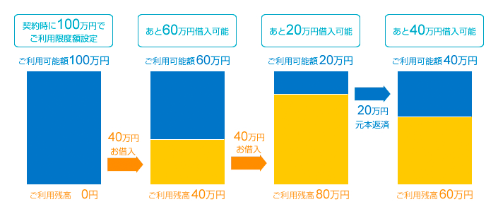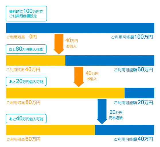 ご契約額(極度額)の範囲内で何度でも繰り返しご利用いただけます。
