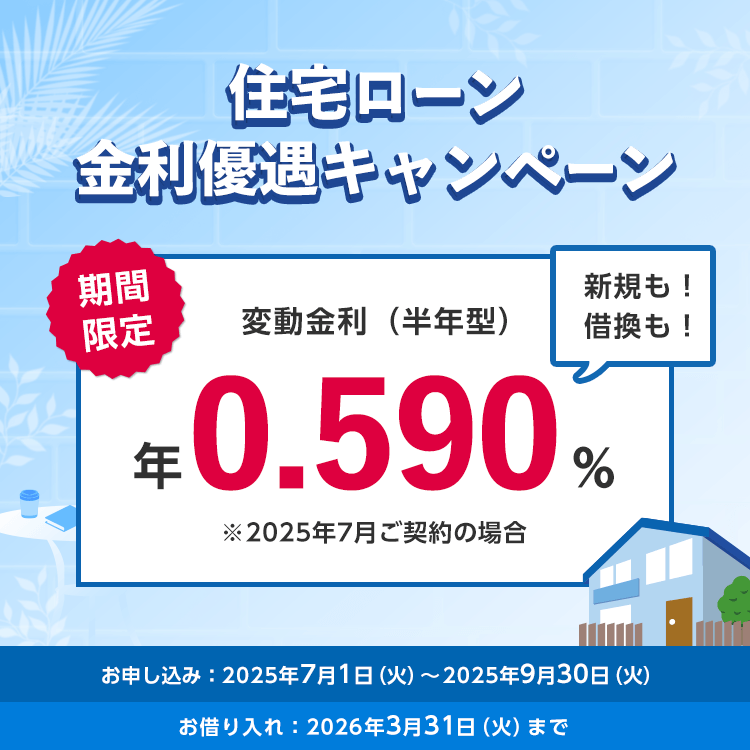 2025年7月1日 キャンペーン【終了】住宅ローン金利優遇キャンペーン開始!