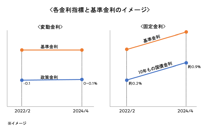 一般的に、基準金利は変動金利の場合、短期プライムレートの影響を受け、固定金利の場合、長期プライムレートの影響を受ける傾向があります。