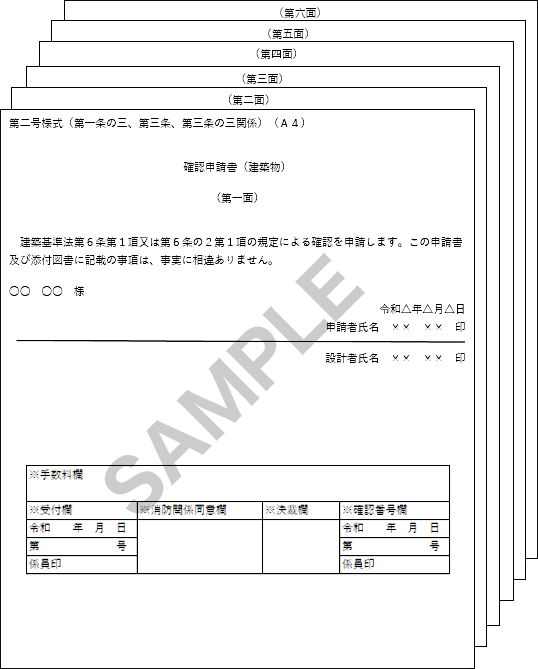 第一面から第六面までの全ページをご提出ください。 <建築確認申請書>