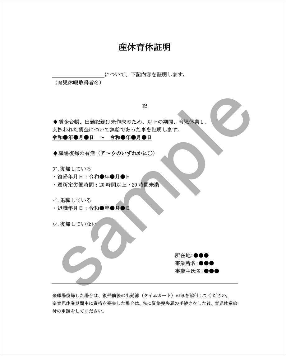 <産休・育休証明書>