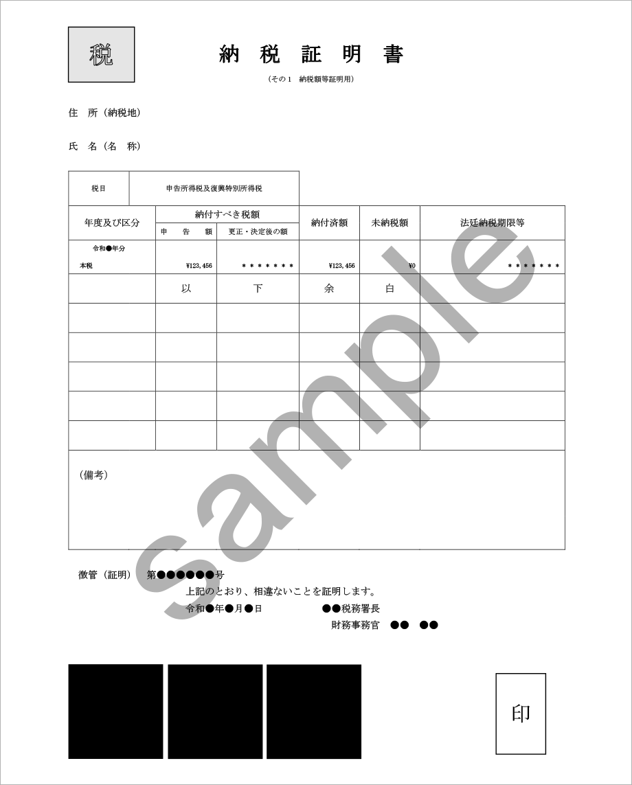 | 所得税の納税証明書(その1・その2)(原本*) *PDF形式で発行した電子納税証明書も受付可 |