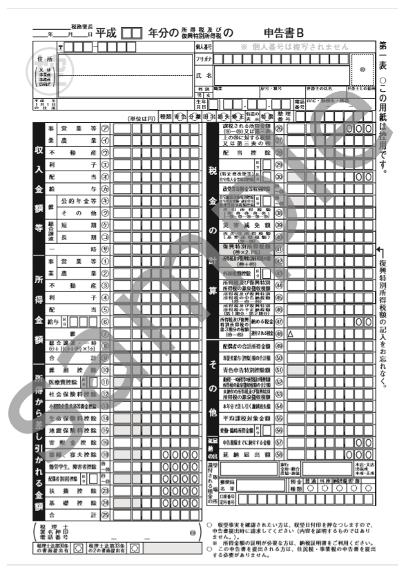 | 所得税の確定申告書 |