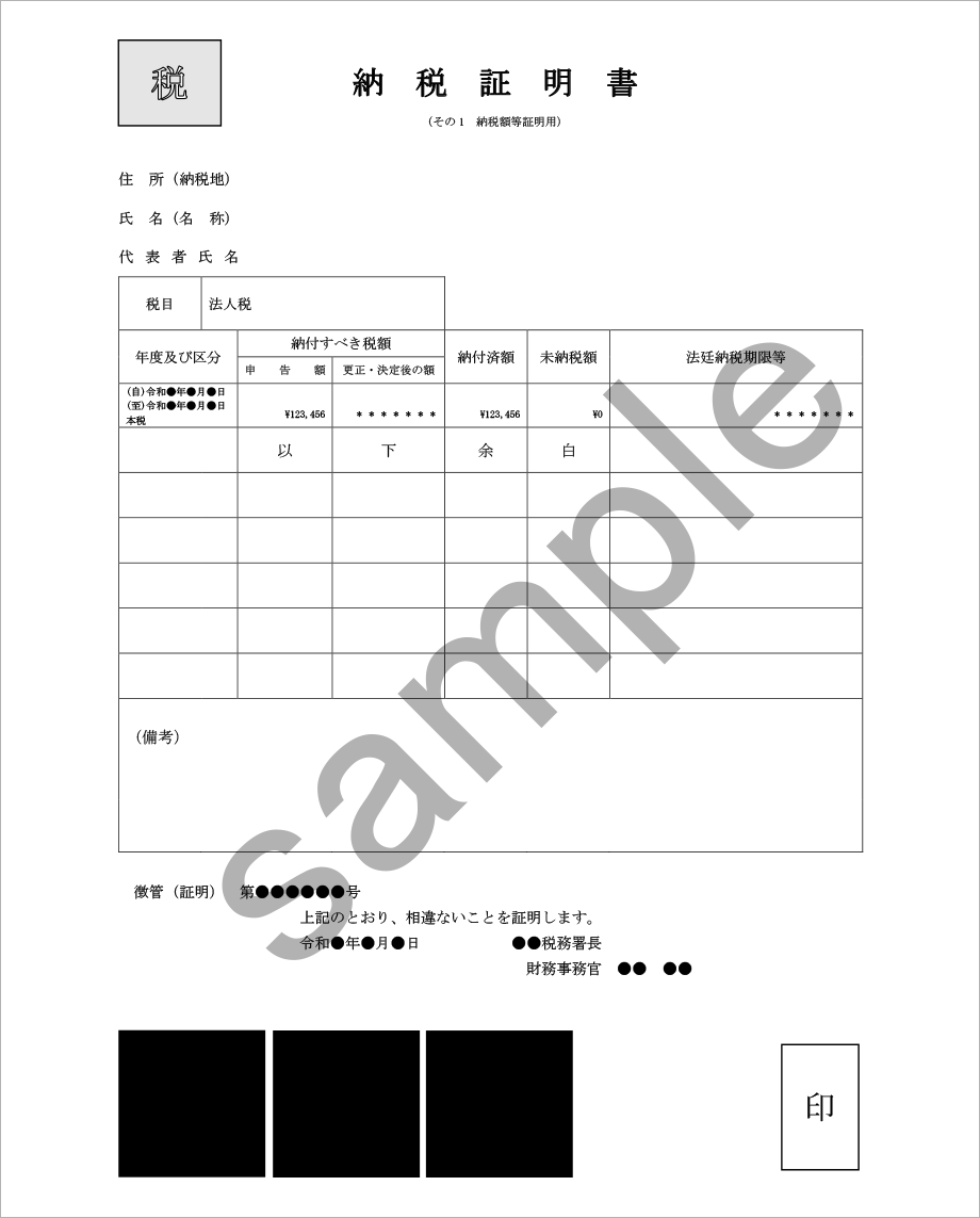 直近2年分をご提出ください。 <法人税の納税証明書 その1>