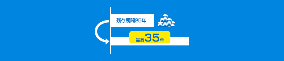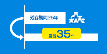 例えば、いまご利用中の住宅ローンの残存期間が25年でも、最長35年間でのお借り換えが可能です。