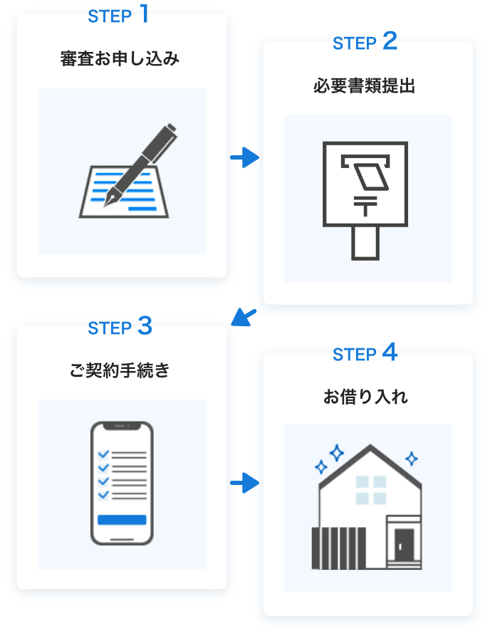約5営業日を目安に審査に必要な書類のご案内を発送いたします。