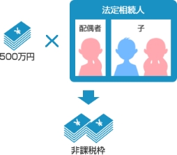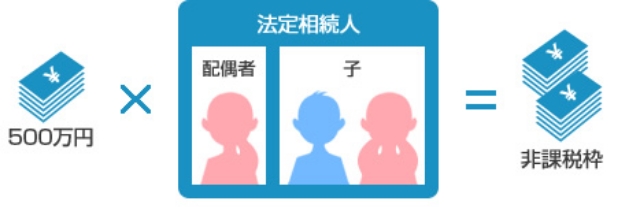 例:配偶者および子2名が法定相続人の場合、非課税枠は500万円×3人=1500万円となります。