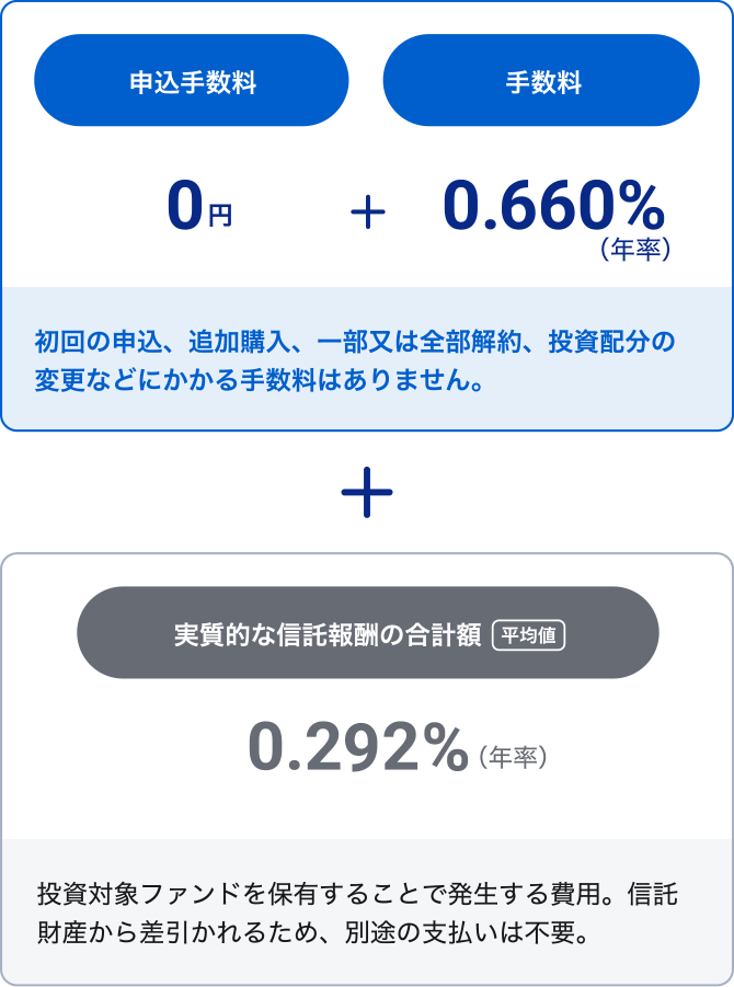 - 運用資産額(現金部分を除く)に対して0.66%(年率・税込)の「投資一任手数料」をご負担いただきます。