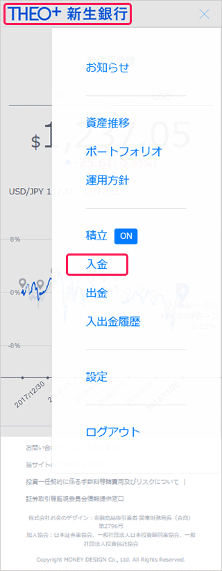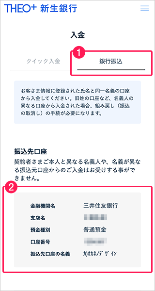 - 左上のロゴが「THEO+ SBI新生銀行」であることをご確認ください。