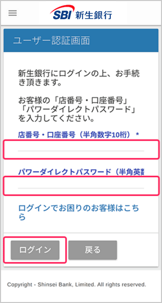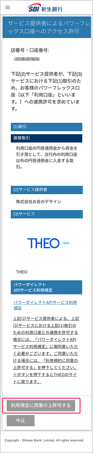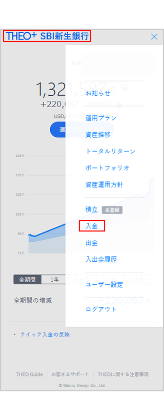 - 左上のロゴが「THEO+ SBI新生銀行」であることをご確認ください。
