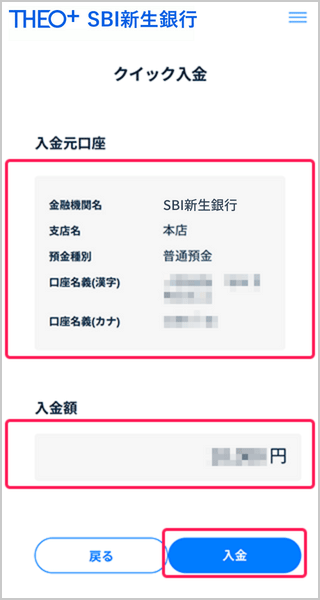 「THEO+[テオプラス]SBI新生銀行」 クイック入金 操作ガイド