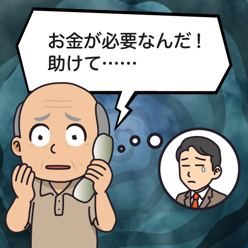 息子や孫、上司などを装い、親族が起こした事件・事故に対する示談金などを名目にお金を騙し取る詐欺です。