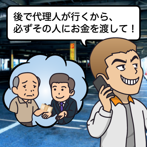 自宅や指定された場所に犯人が現金を直接受け取りに来ます。