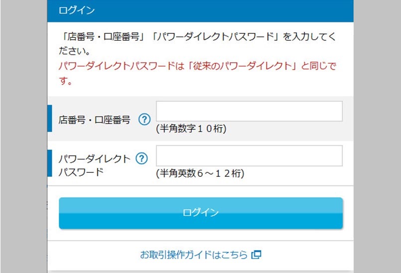 パワーダイレクトへのログイン時には下記2つの認証要素を組み合わせてご本人確認を行っております。