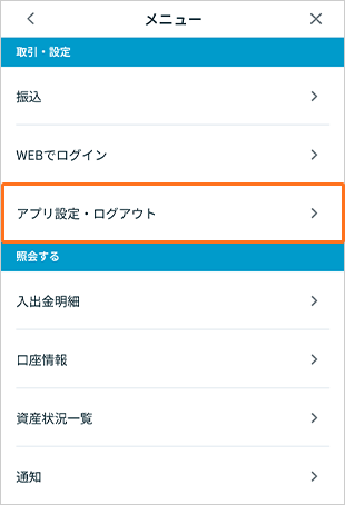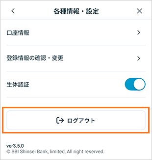 「ログアウト」をタップすると、アプリのログアウトが完了します。