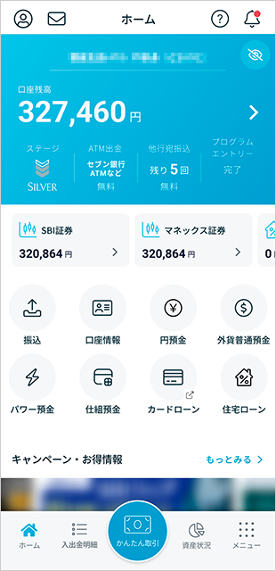 振込や入出金明細、キャッシュプレゼントプログラムのエントリーなど各種機能をご利用いただけます。