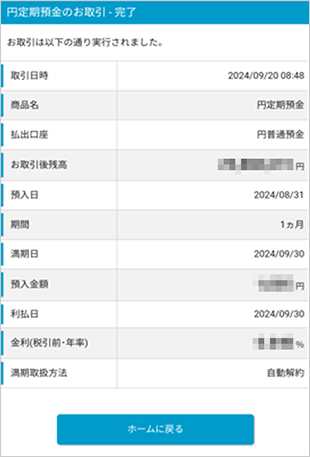 取引結果が表示され、お手続きは完了となります。