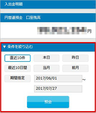 (ご確認いただける入出金明細の期間は「照会日当日から前々年同月まで」です。)