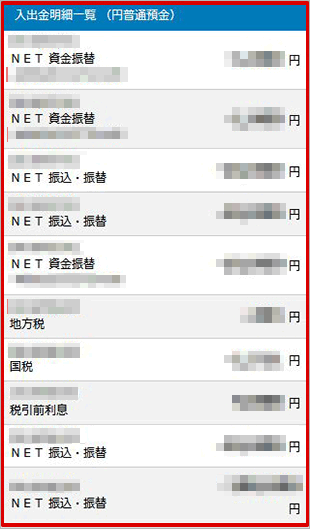 絞り込んだ条件で、入出金明細が表示されます。
