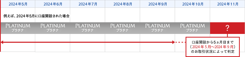 新規に口座開設された場合、口座開設6ヵ月目までは「プラチナステージ」でご利用いただけます。