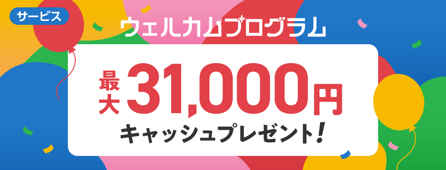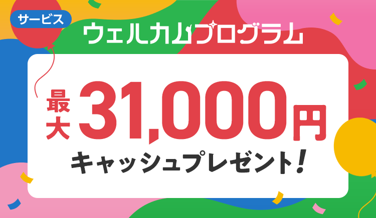 ウェルカムプログラム 最大22,000円キャッシュプレゼント! ウェルカムプログラム 最大22,000円キャッシュプレゼント!