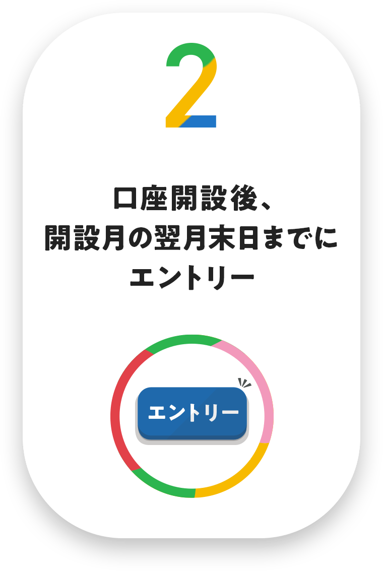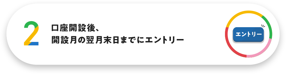 • 口座開設後、口座開設月を含む3ヵ月目の末日までに本プログラムにエントリーいただいたお客さまが対象となります。