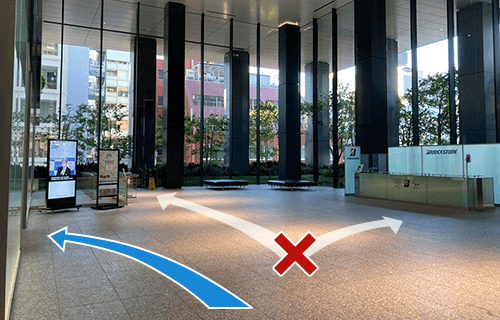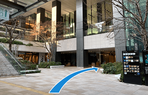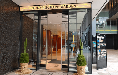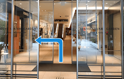 京橋駅3番出口から東京スクエアガーデンに進み、右手自動ドアより建物内へ。