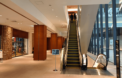 エスカレーター手前を左に曲がり、正面に見えるエレベーターでいったん3階へ上がります。