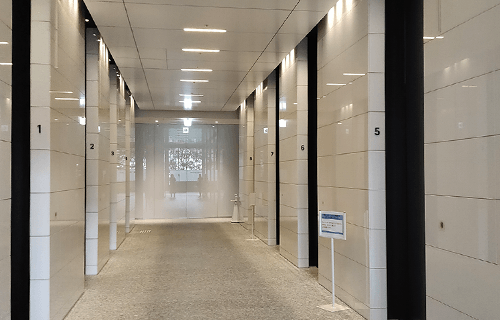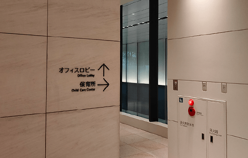エレベーターを降りて、左側の「オフィスロビー」の表示に従って進みます。