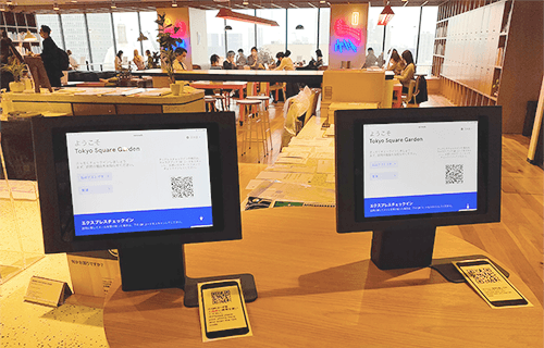 WeWorkスタッフの案内に従って、受付タブレットにて氏名・顔写真の登録をお願いいたします。